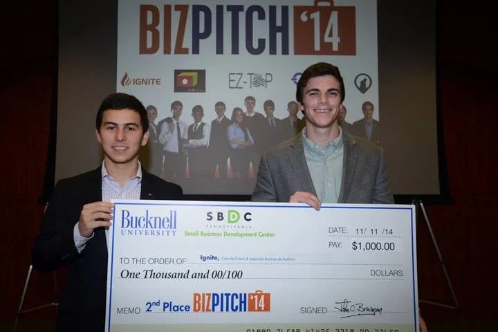 The first picture shows me and my friend, Alejandro, after winning 2nd place in the Bucknell Business Pitch Competition. We were given this big check (President Bravman spontaneously doubled our winnings) and space to work in the downtown incubator. The image below shows a mockup of the site we were working on at the time - Ignite.